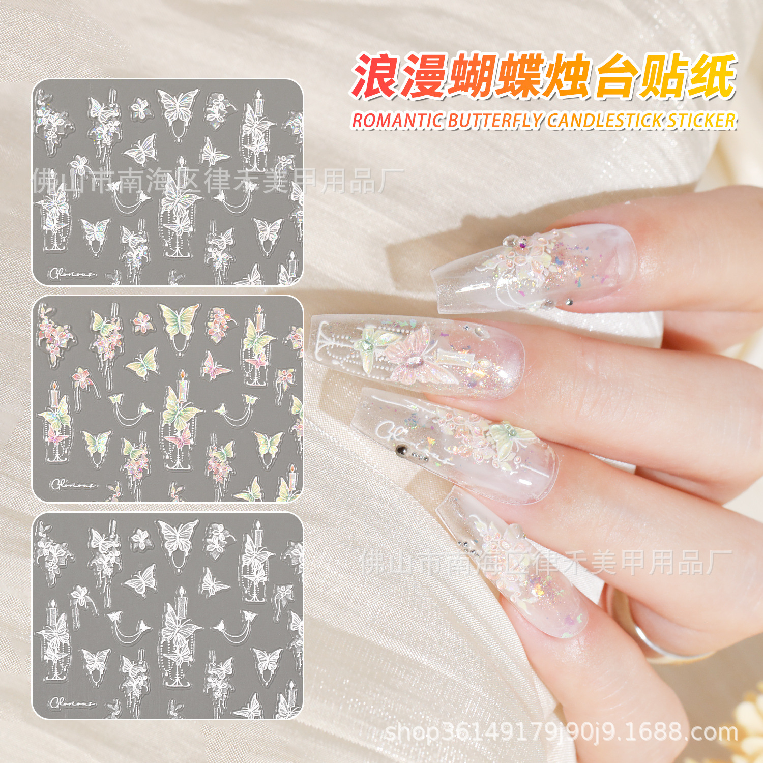 ネイルアートステッカー人気の日本スタイルスーパーフェアリーファントムホットスタンピング蝶レリーフ立体スマートロマンチックな燭台ネイルアクセサリー