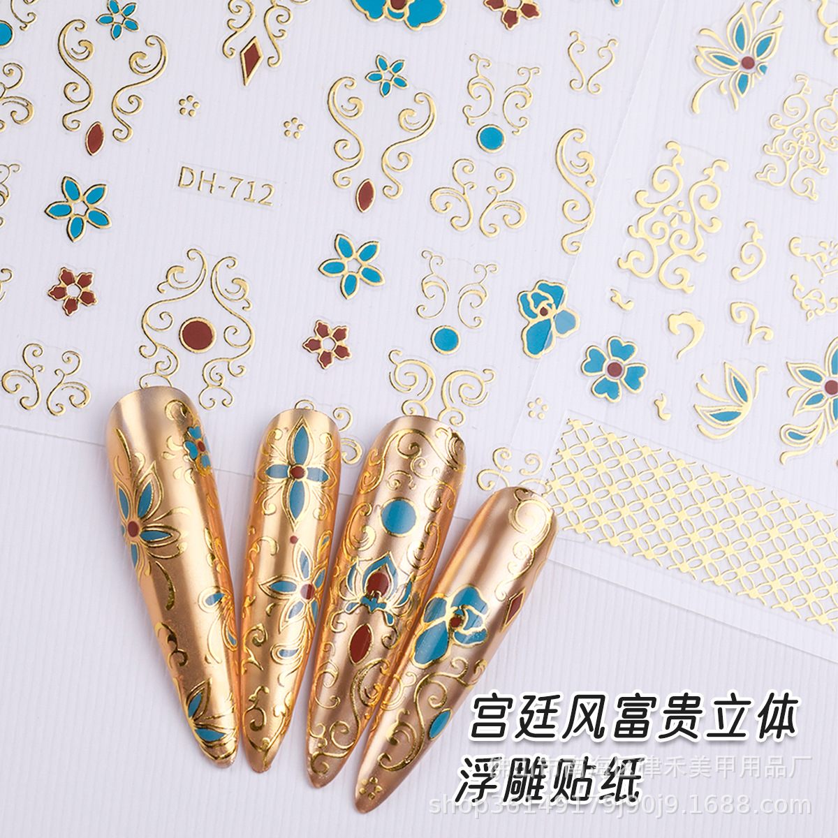 爆発金軽豪華復古風宮廷護甲富貴立体ネイルシール2d箔押し皇居ネイルシール卸売り