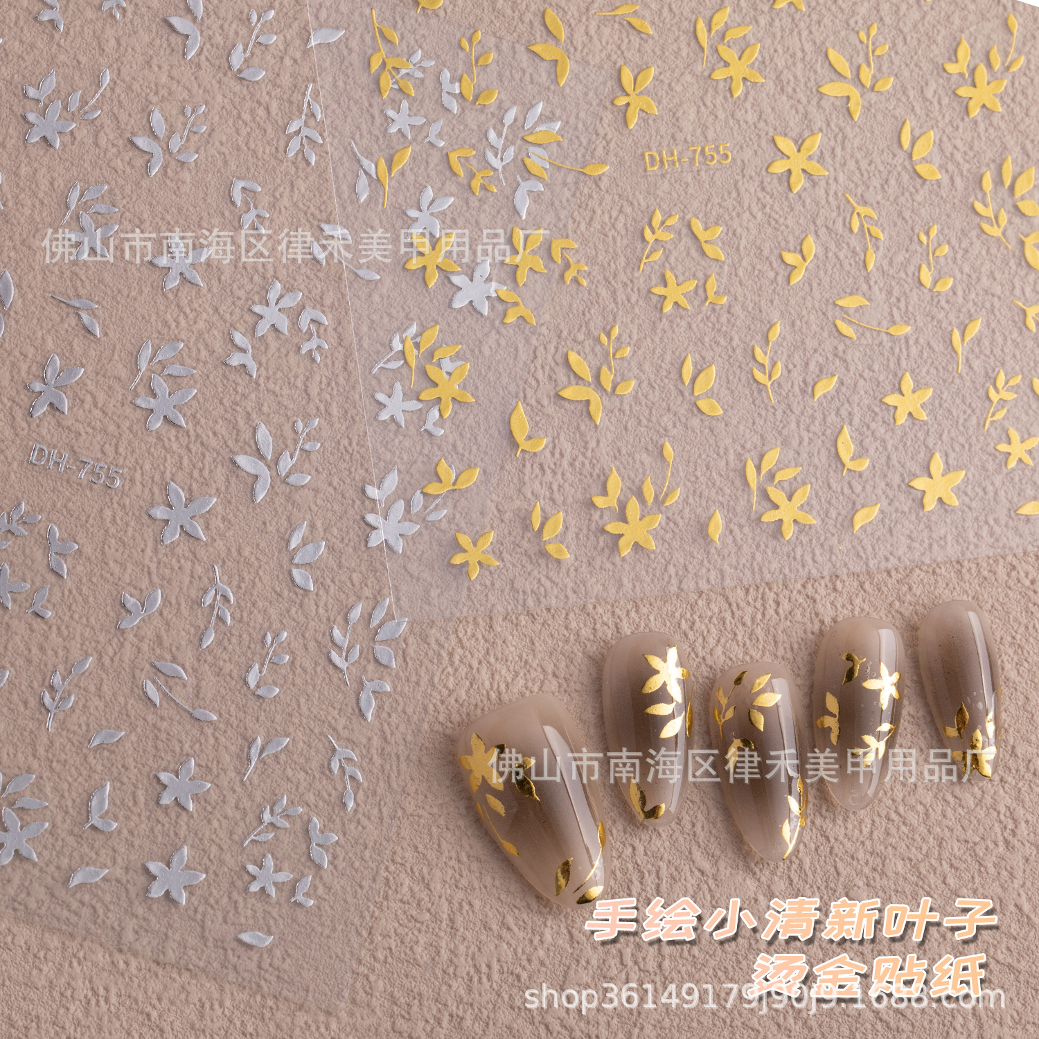 新型の軽豪華な箔押し銀ネイルシール2d手描きの小清新な落葉ネイルシール装飾テープ