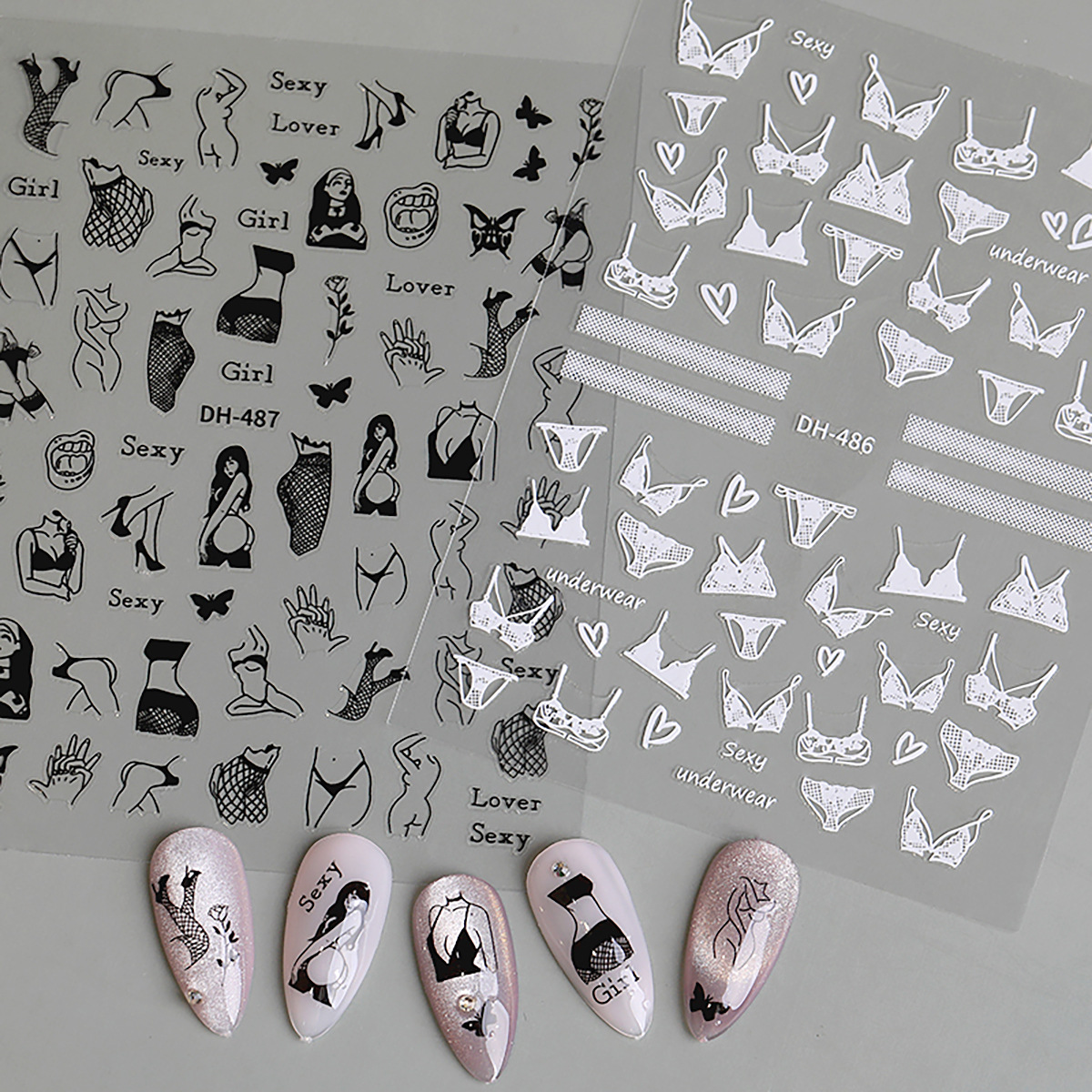 新しいネイルシールセクシーな女の子レース下着ins風個性花英語アルファベット蝶爪貼り