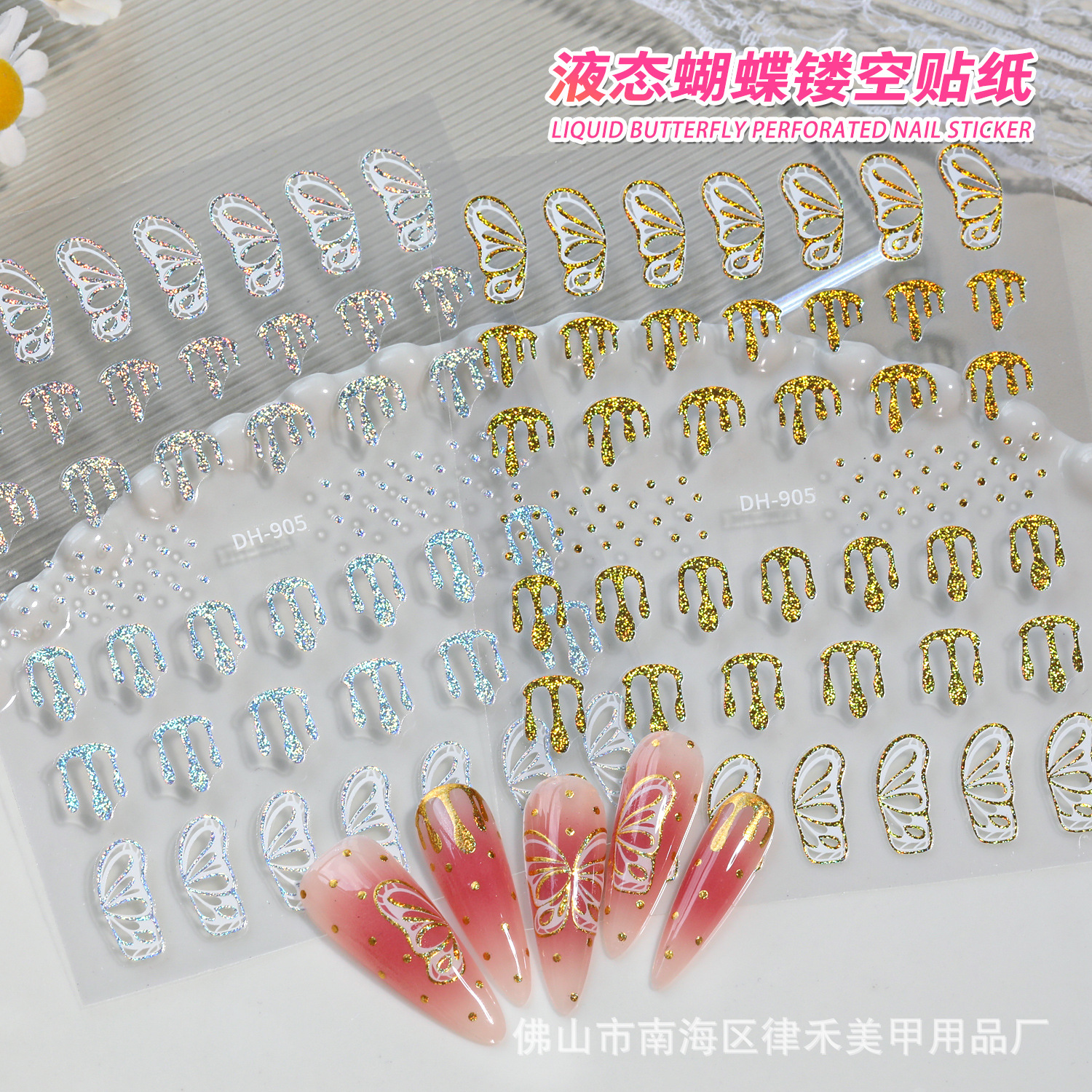 ライトラグジュアリーでハイエンドな不規則な蝶の羽のネイルアートステッカー超光沢のあるゴールドとシルバーの中空蝶のネイルデコレーション
