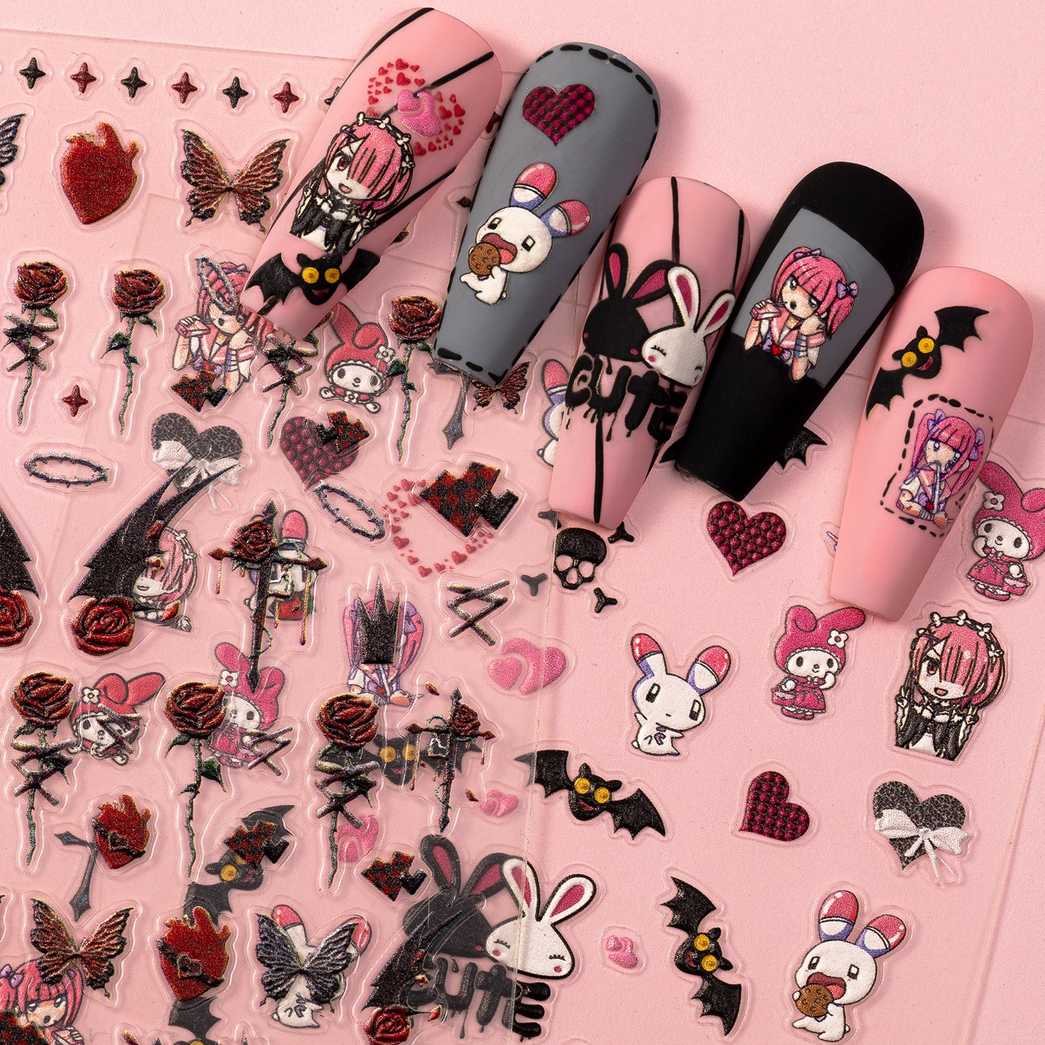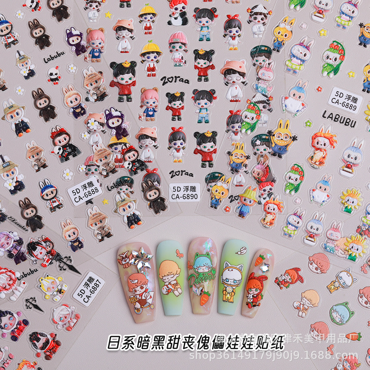 爆発的な日系アニメ暗黒風甘喪傀儡人形ネイルシールアニメかわいい5Dバックゴム爪装飾