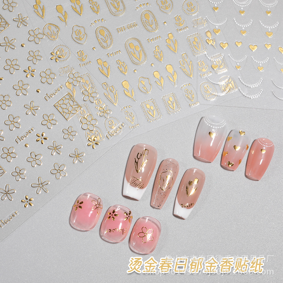 ネット赤箔押し金春日チューリップシール愛赤五葉花貼り花帯バックネイルシール装飾
