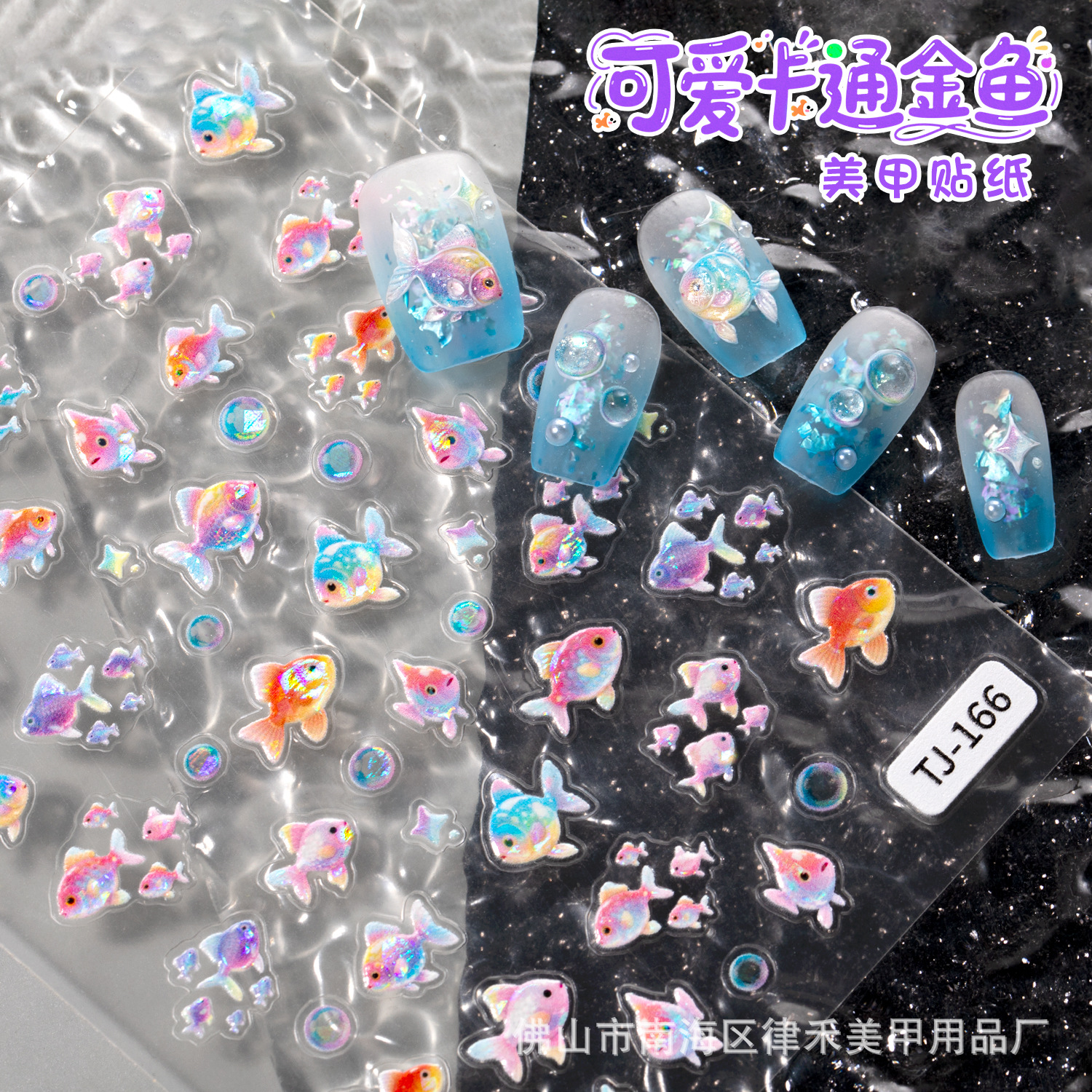 新しいオーシャンスタイルシェルライトかわいい金魚ネイルアートステッカーエンボス加工立体カラフルなバブル金魚ネイルステッカー