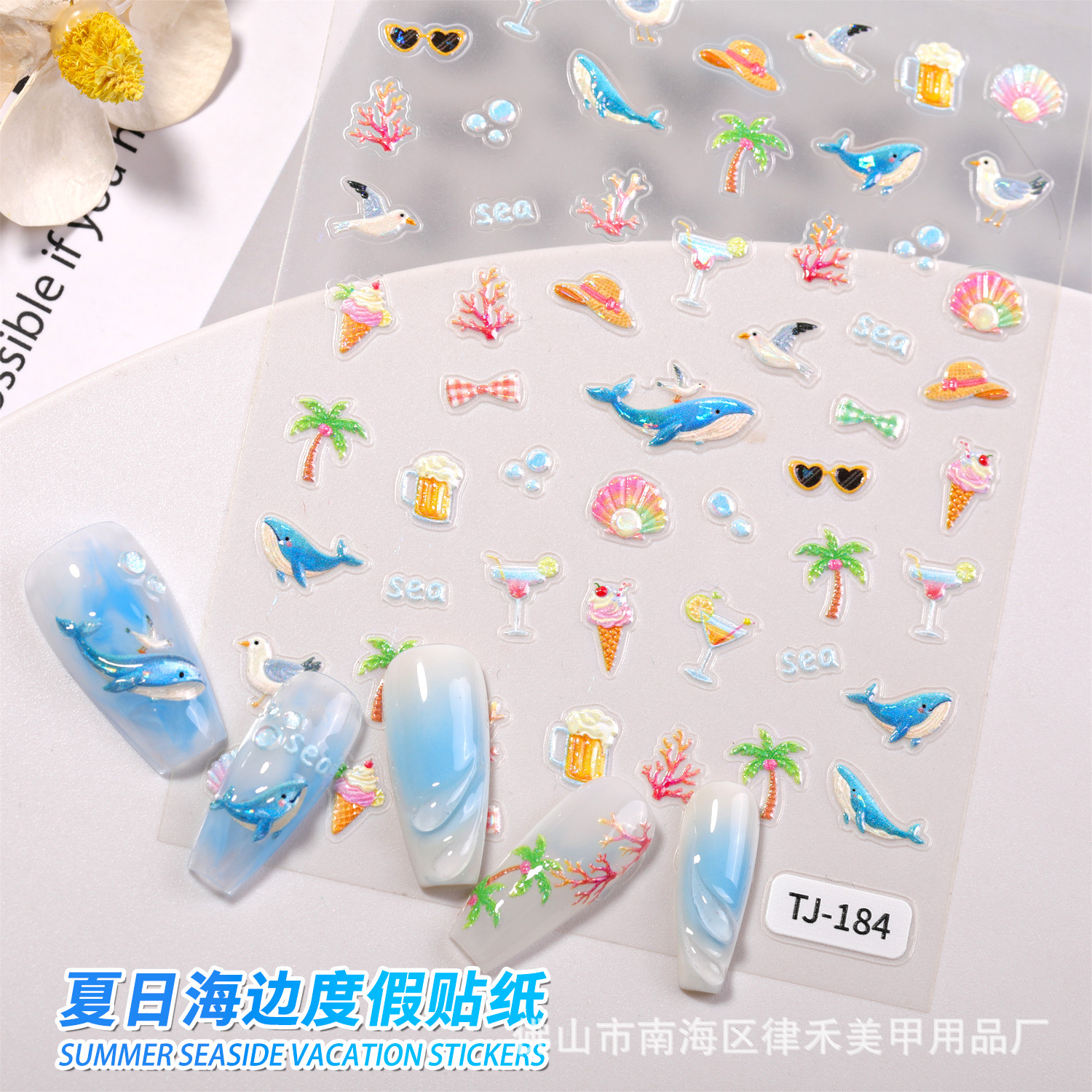 新しい夏のビーチ休暇ネイルアートステッカーエンボスシェルライトカモメクジラシェルネイルステッカー卸売