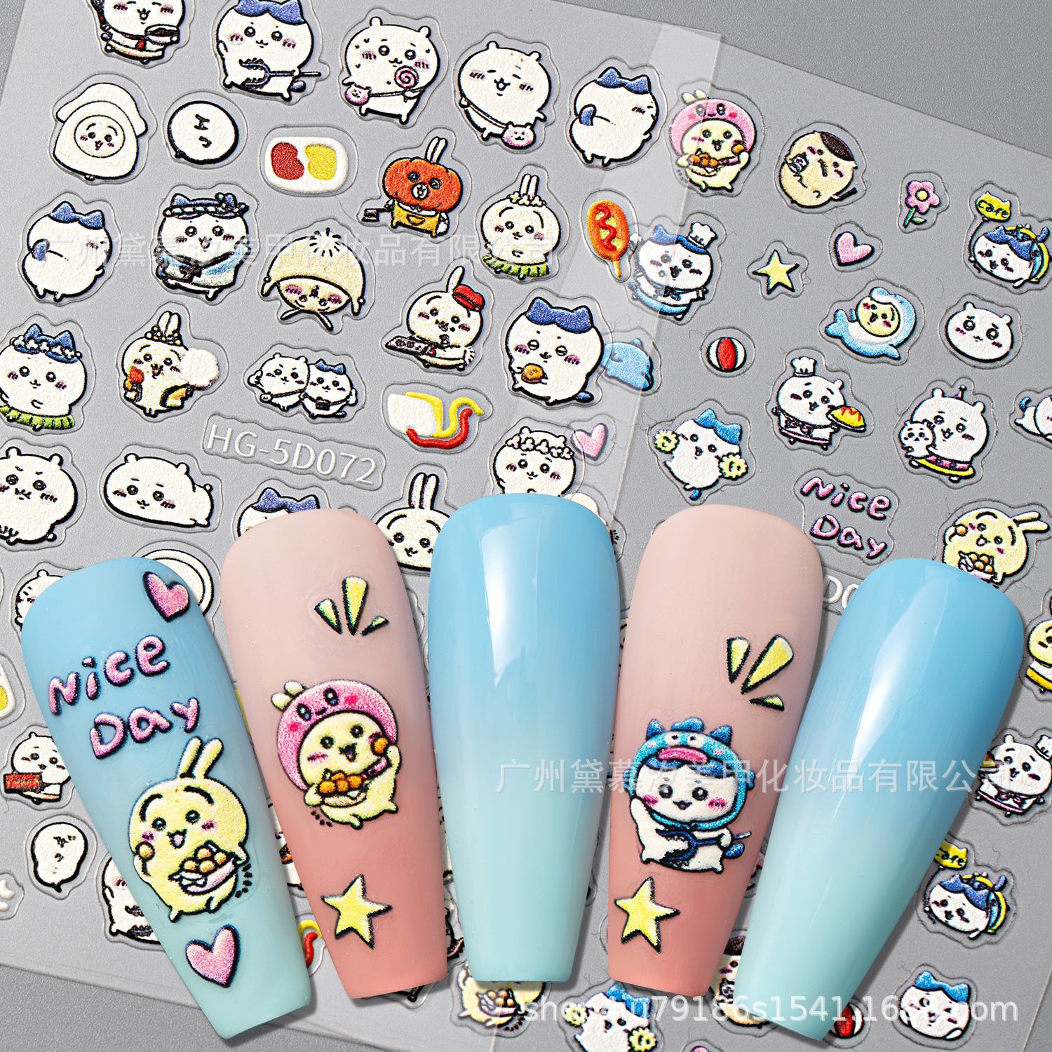 ネットセレブ人気チイカワチイカワネイルアートステッカー漫画かわいい高価値5D立体レリーフステッカー