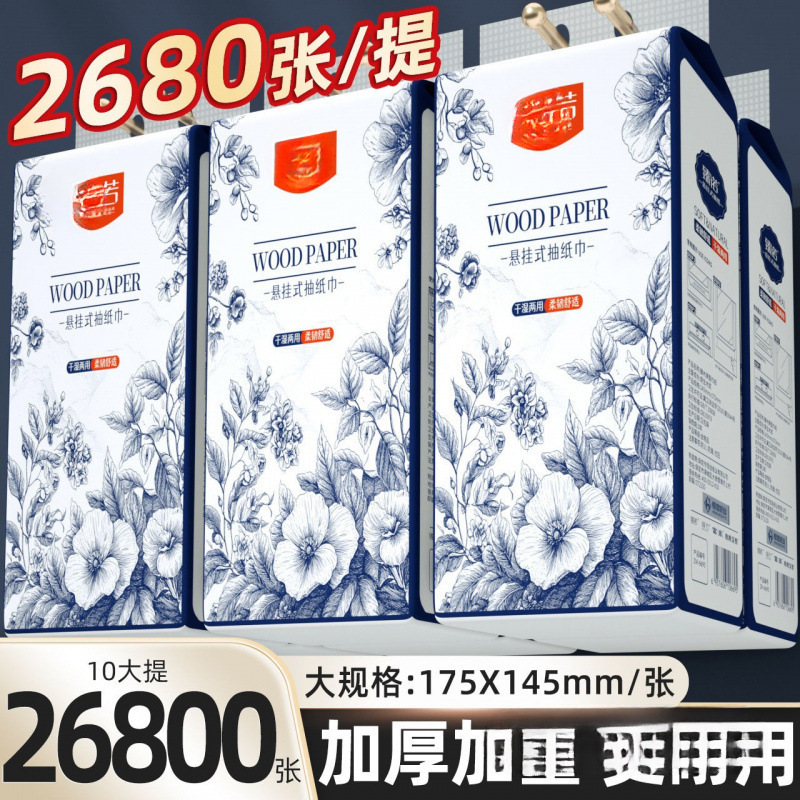 吊り下げペーパータオル [2680枚/袋] 取り外し可能な増粘フルボックスハンドタオル フラットトイレットペーパー 大型パック