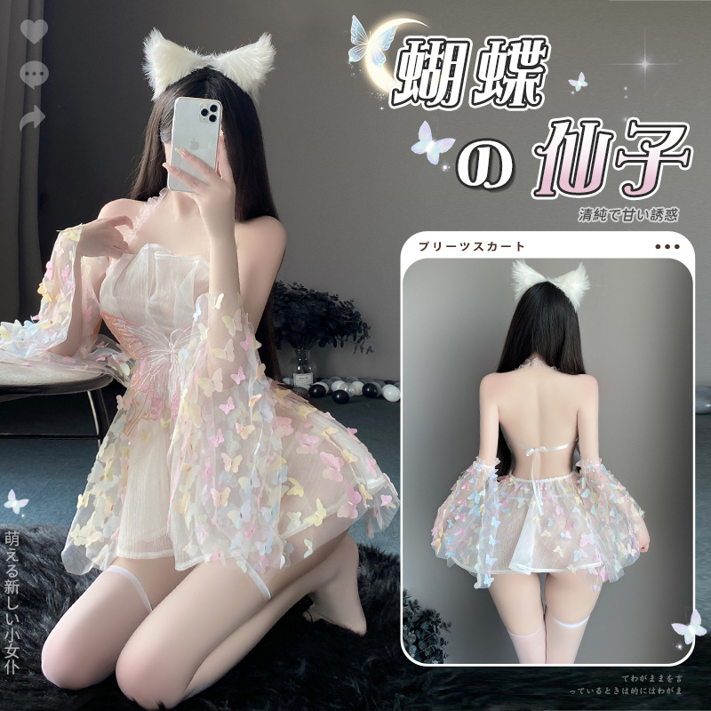 マン煙趣味下着セクシーグラデーション蝶仙子夢幻姫透視スカート制服セット9121