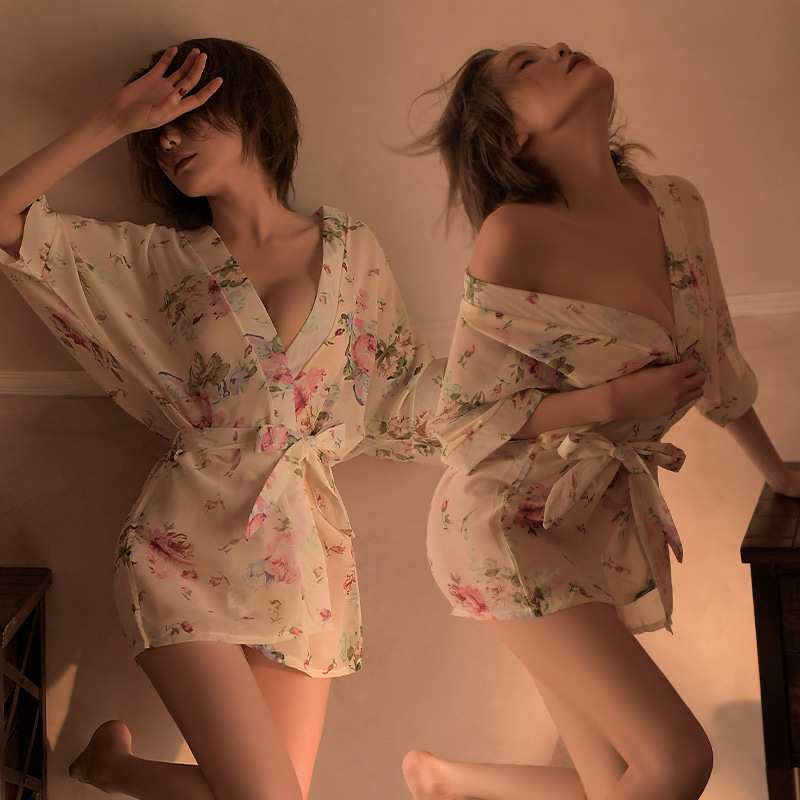 マン煙のセクシーな日本式プリントのカーディガンとパジャマのセットのバスローブの部屋服1822
