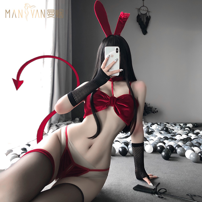 マン煙のセクシーな下着のセクシーな首の3点の蝶結びの柔らかい萌えのウサギの女性の制服のスーツtny9747