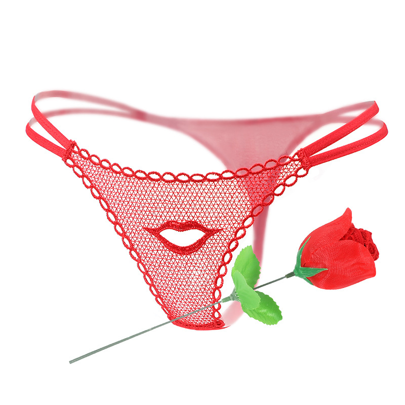 マンヤンセクシーな透かし彫りランジェリー、透けるレースの花柄刺繍入り三角パンツ、Tバック、エロティックな女性用下着1130