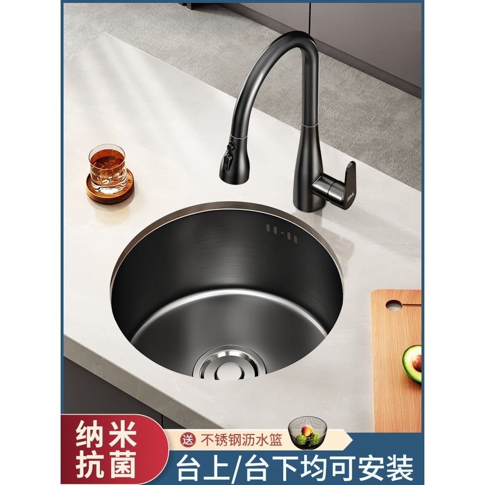 ブラックナノラウンドミニシンク小型シングルスロットステンレス鋼バーアイランドキッチンシンクアンダーカウンター
