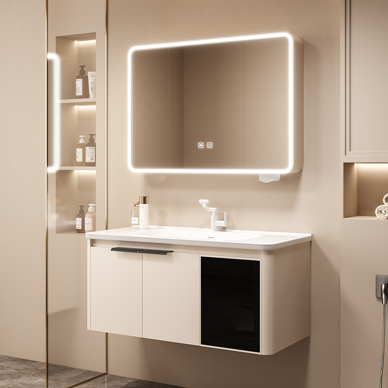新クリーム風北欧実木浴室キャビネット陶磁器一体型洗面所洗面台洗面台セット洗面台