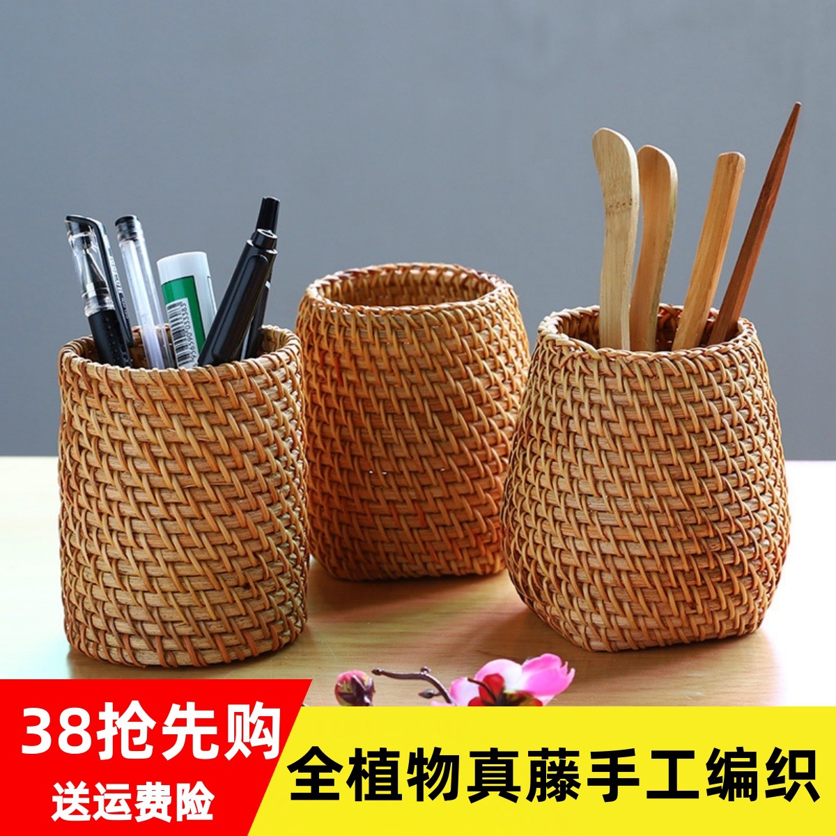 ベトナム秋藤編み筆筒茶道具竹茶さじ茶茶針プーアル茶六君子茶道部品収納筒