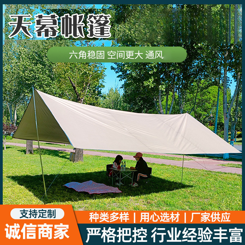 屋外キャンプ天幕テント観光炊飯六角日除け棚は日焼け止め防水八角形黒糊塗装銀層を厚くした
