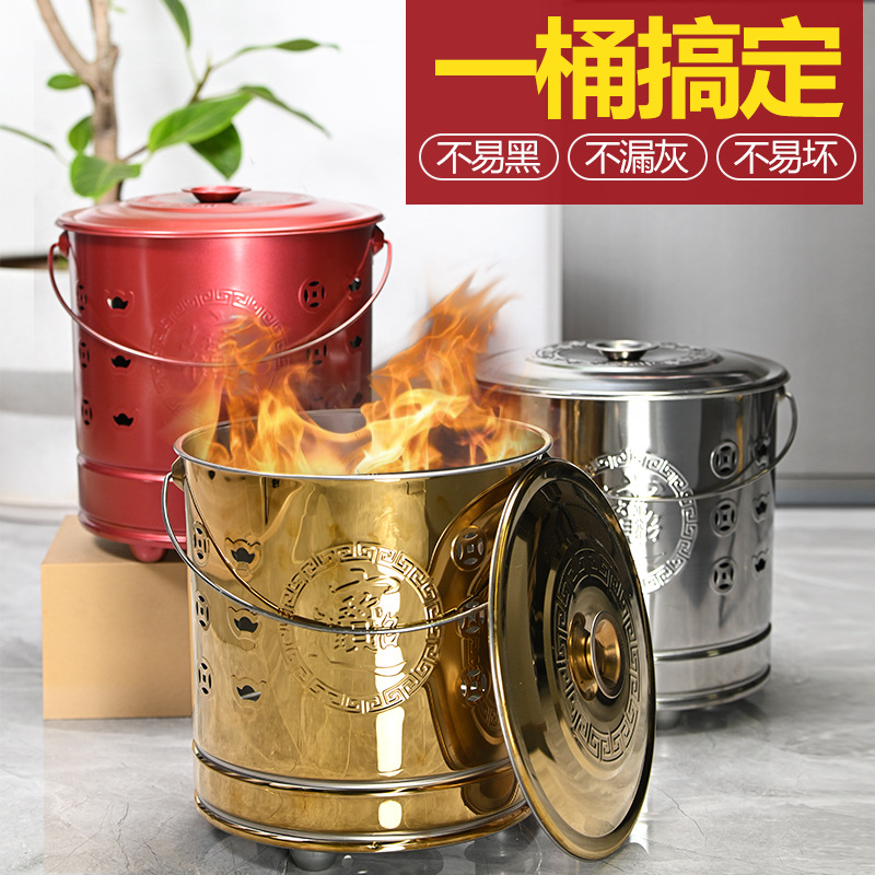 ステンレス製紙バケツ、家庭用金バケツ、屋内錫箔元宝バケツ、焼却炉、宝バケツ、宝盆地焼却炉