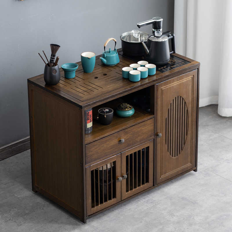 モバイルティーテーブル、小さなティーテーブル、家庭用中国茶キャビネット、車輪付きティーカート、ティーテーブル、カンフー茶セット、水を沸かすオールインワン