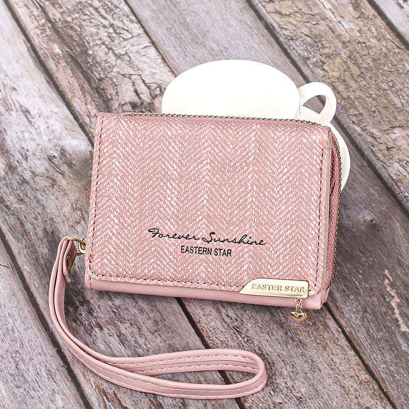 小さい清新な韓国版の短いタイプの女性の財布はpu皮の純色のかわいい小さい財布のカードのカバンのハンドバッグを掛けます。