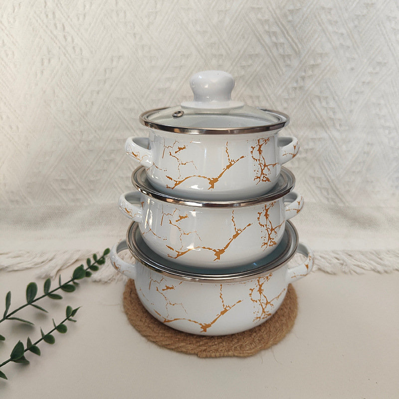 クロスボーダーエナメル 12-14-16cm 3点セット 小鍋 ミニ鍋 キッチン 離乳食サプリメント 小型シチューポット ツバメの巣鍋