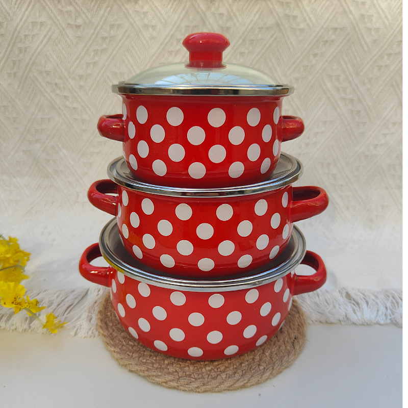 クロスボーダーエナメルエナメル三点セットミニ鍋赤ちゃん補助食電磁炉ガス通用家庭用唐辛子油鍋