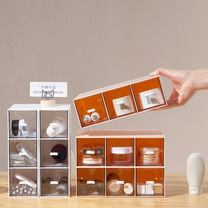 引き出し収納ボックス 化粧品 デスクトップ 防塵 プラスチック 細長い収納ボックス 組み合わせ可能 引き出し式