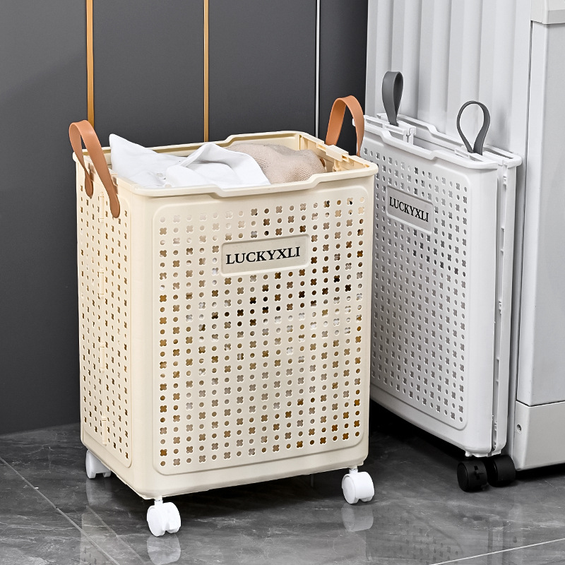 家庭用特大サイズの汚れた衣類用バスケット、車輪付き、大容量、折りたたみ式、見栄えの良い、取り外し可能なプラスチック製の汚れた衣類用バスケット