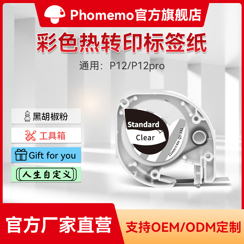 Phomemop12カラーラベルリボン三防合成紙透明防水カーボンテープ粘着ラベル印刷紙