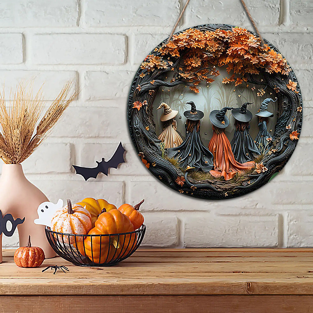 現物創意木製工芸表札飾り円形マーク5つの魔女木札ハロウィーン日パーティー装飾