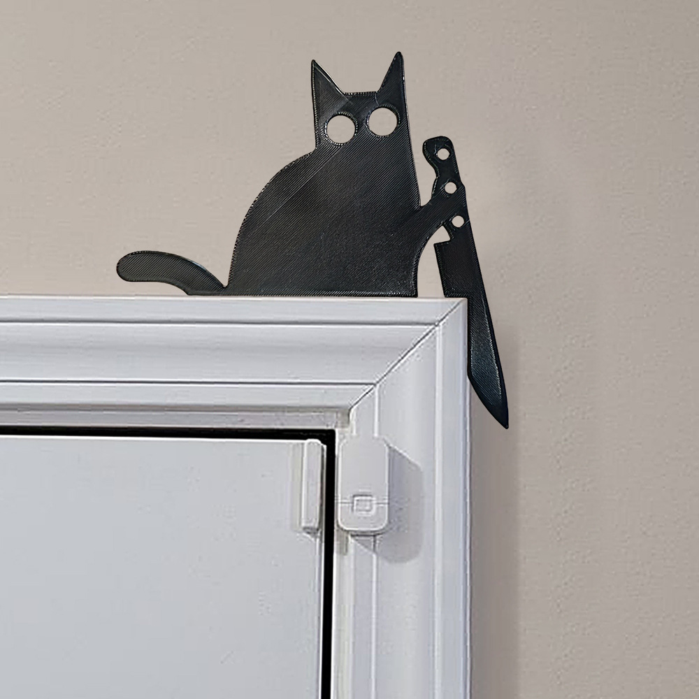 現物かわいい黒い猫のドアの角は壁にくっついて装飾します。