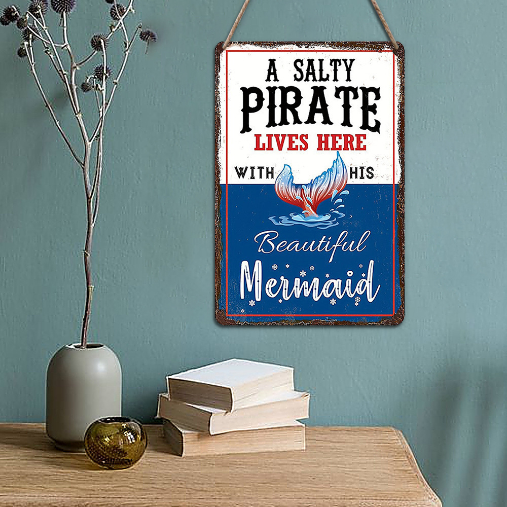 現物海洋風木製看板海賊とマーメイド標識表札家庭装飾壁掛け式木製ペンダント
