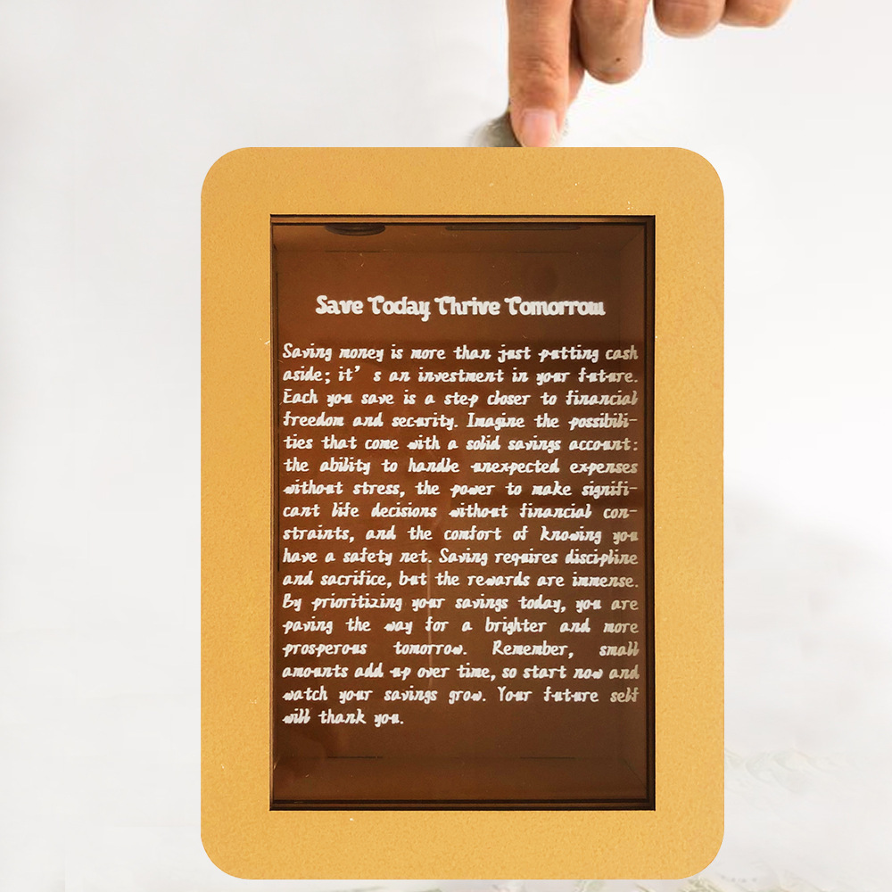 現物木製貯金箱子供貯金箱創意激励志標語木製透明貯金箱デスクトップ装飾品
