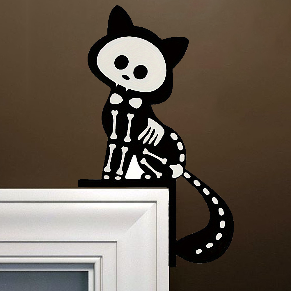 現物のスカルの黒い猫のスイッチを貼って寝室の壁面の装飾を貼ります。