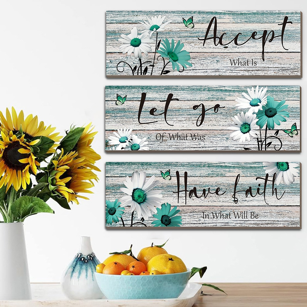現物レトロレトロ木製ウォールステッカー装飾ブルーデイジーサイン3点セットホーム装飾ブランド壁面ストラップ