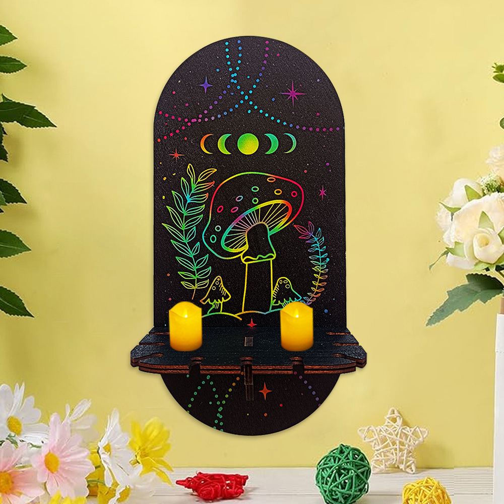 現物ボヘミアン風木製のまぶしいキノコの壁面の物置棚