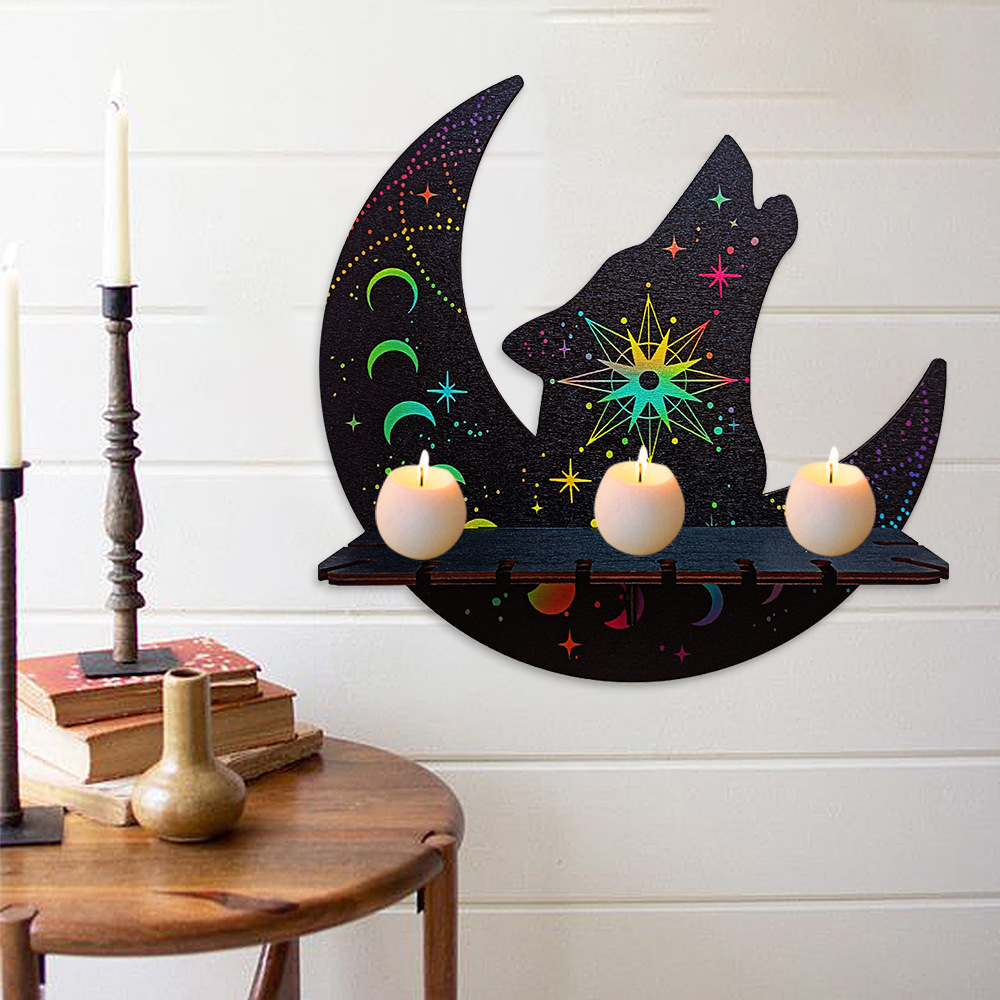 現物木造星月系暮光の狼収納棚民宿壁面の壁に月の装飾を飾る