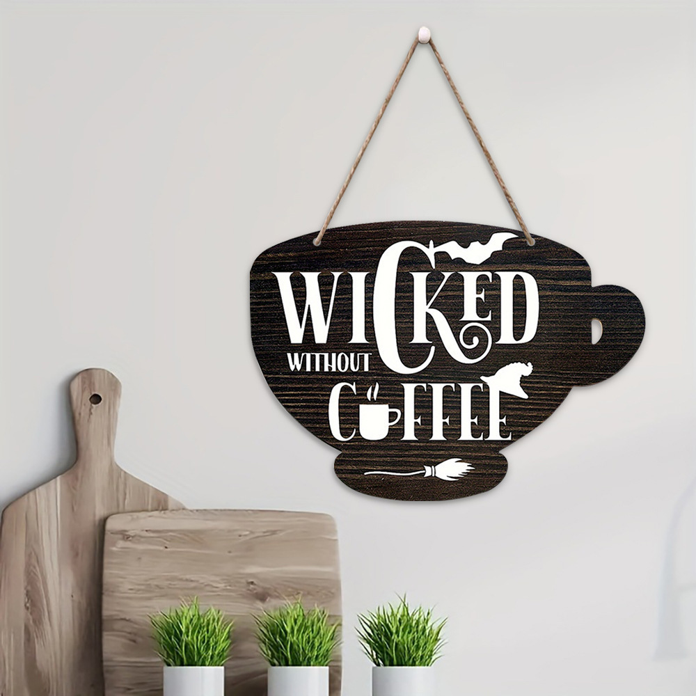 現物ハロウィーン表札コーヒーとお茶木製レトロ札コーヒー愛好家看板キッチンロゴ装飾
