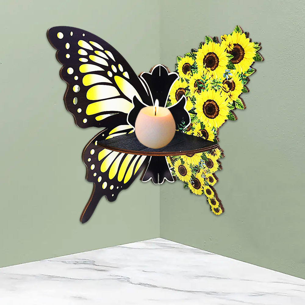 現物の木の花の蝶の壁の角の棚の創意的な花の十字の蝶の壁の角の置物の棚のアロマキャンドル台の棚