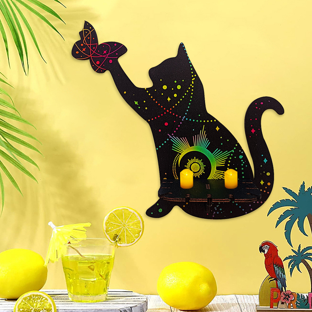 現物木製黒猫精霊水晶棚寝室本棚壁面物置棚家庭装飾木造工芸品
