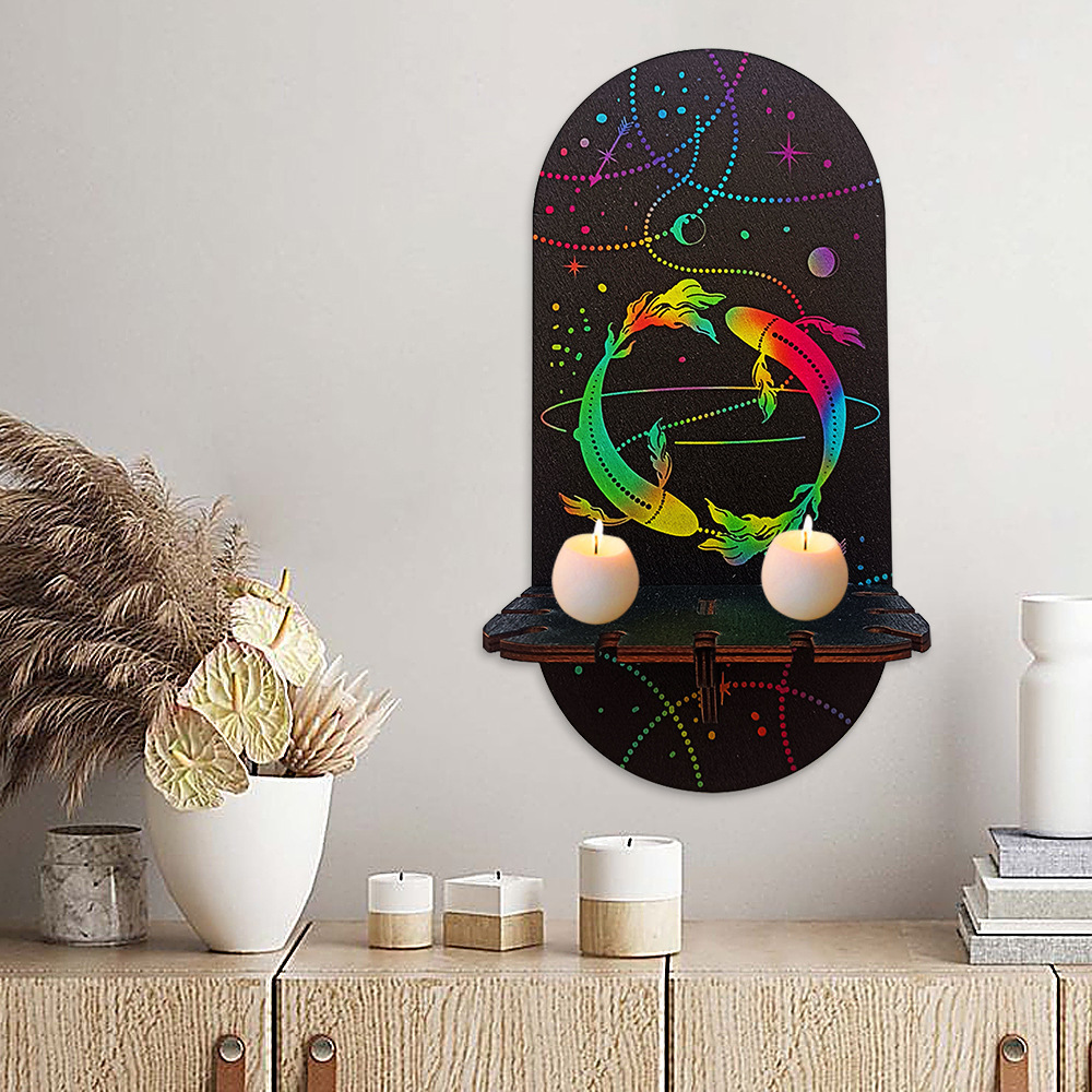 現物木製双尾魚壁面棚木製本棚水晶展示棚家庭装飾壁装飾画