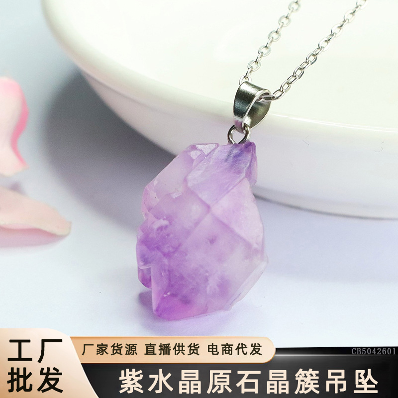 钰天然紫水晶原石ペンダント不規則結晶クラスタネックレス直播福祉卸売りCB5042601