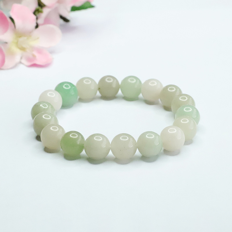 天然和田玉ブレスレット 白玉正円ブレスレット 翡翠ジュエリー工場 直接販売 HT2033104