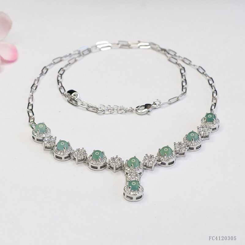钰天然A品翡翠氷種藍水ネックレス玉鎖鎖直播卸売り代発FC4120305