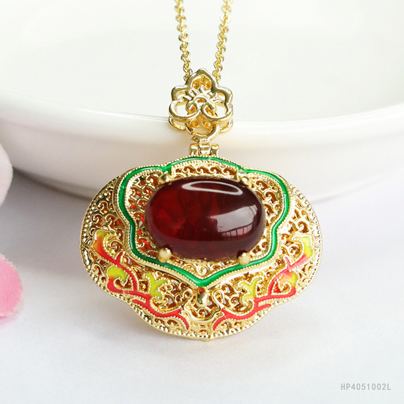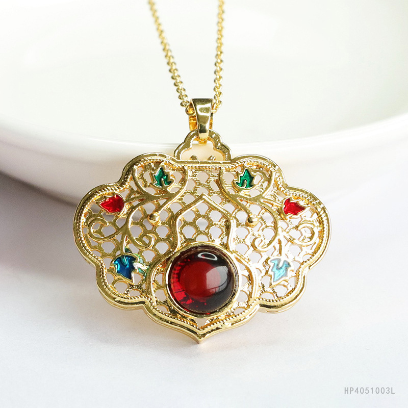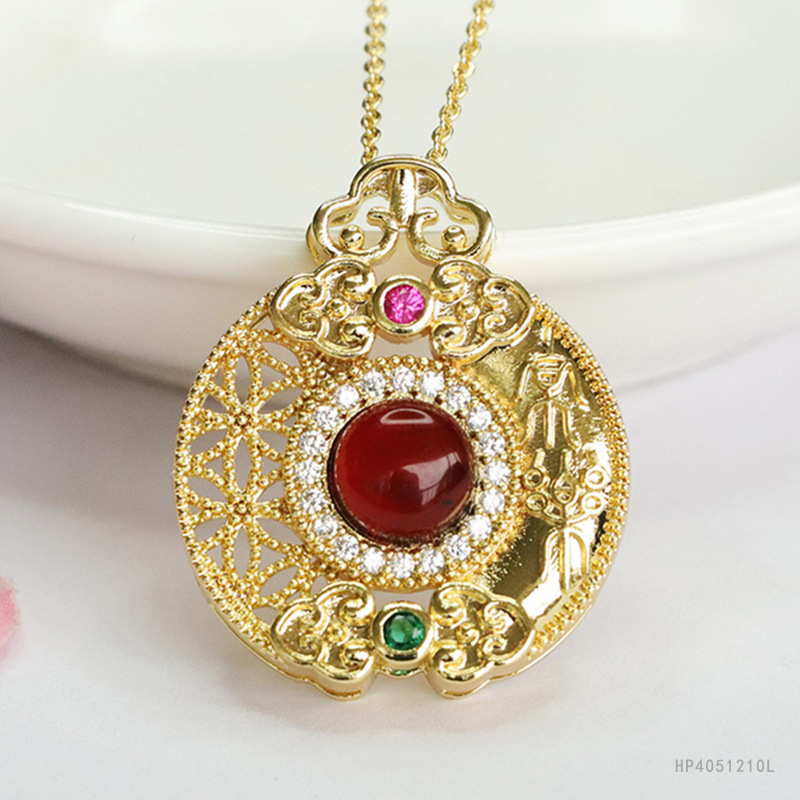 钰天然琥珀ペンダント血パー如意ネックレス国潮宝飾品工場卸売り代発HP4051003L