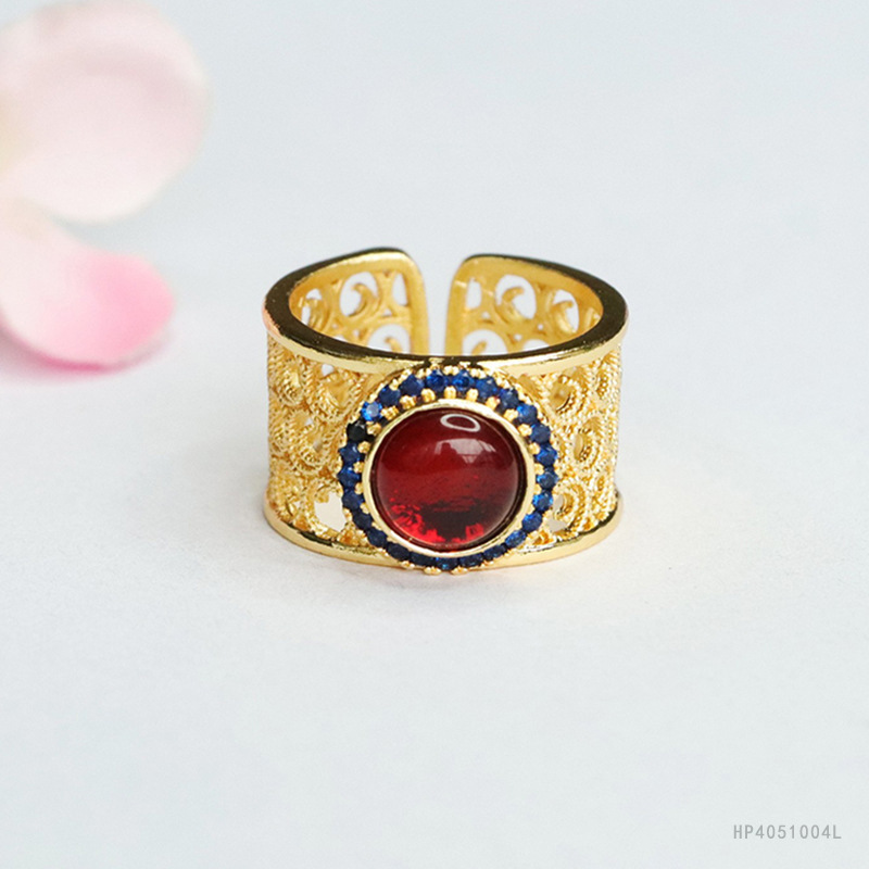 钰天然琥珀指輪血パー口指環復古ジュエリー工場卸売り代発HP4051004L
