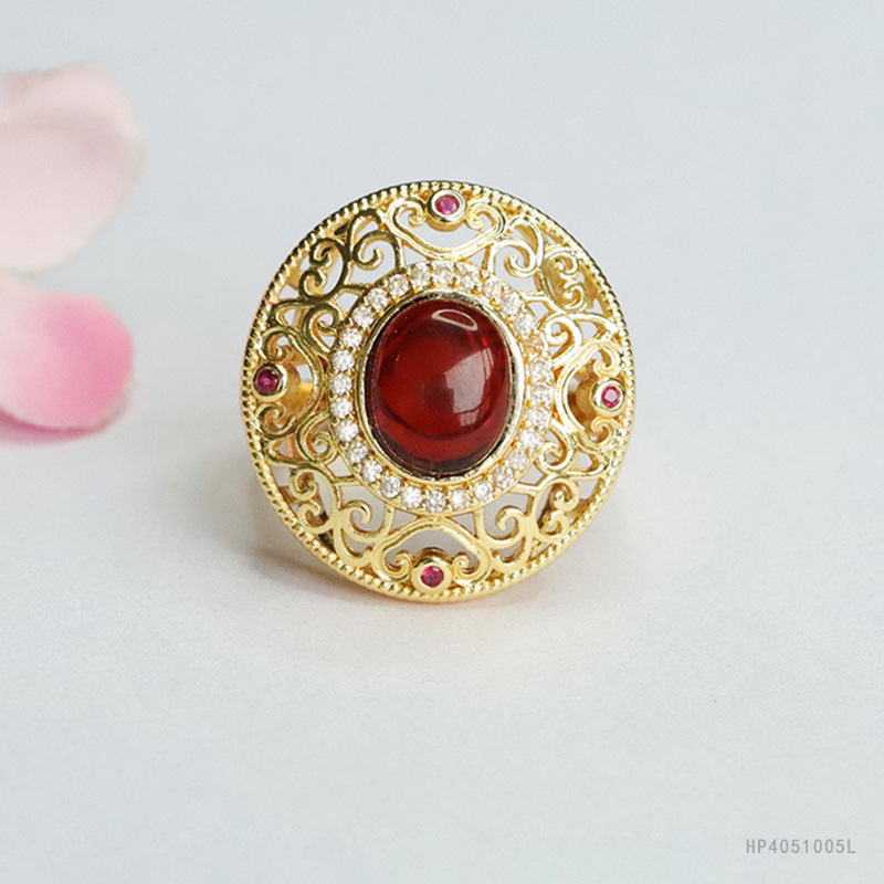 钰天然琥珀指輪血パー口指環復古ジュエリー工場卸売り代発HP4051005L