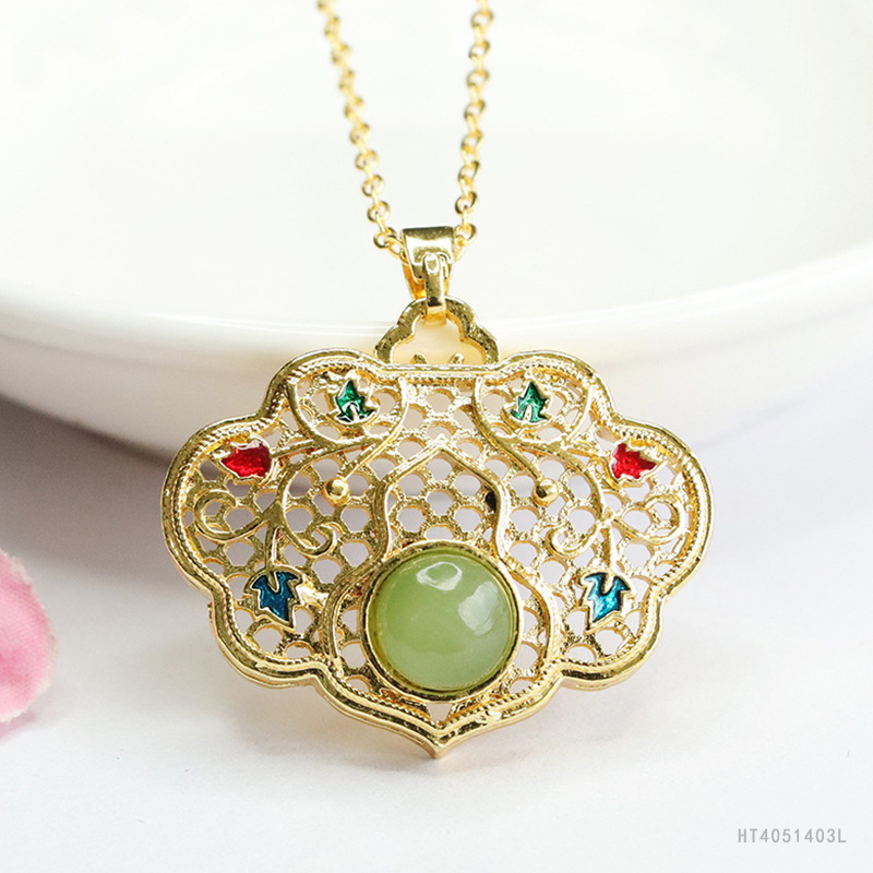 家族玉天然和田玉ペンダント碧玉如意ネックレス女性復古玉卸売り代発ht 4051403l