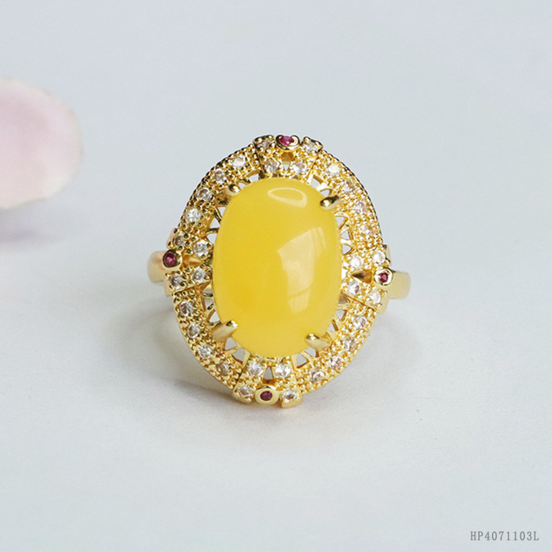 钰天然琥珀指輪鶏油黄蜜ろう指環宮廷風宝飾品卸売り代発HP4071101L