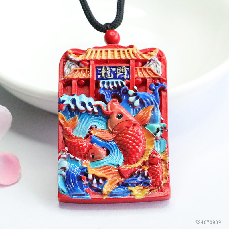 玉朱砂錦鯉ペンダント紅砂彩絵魚躍龍門ペンダントネックレス卸売り代発ZS4070909