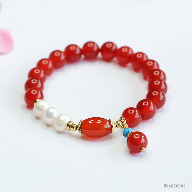 钰天然紅瑪瑙手串淡水真珠ブレスレット国潮ジュエリー生放送卸売り代理MN4070802