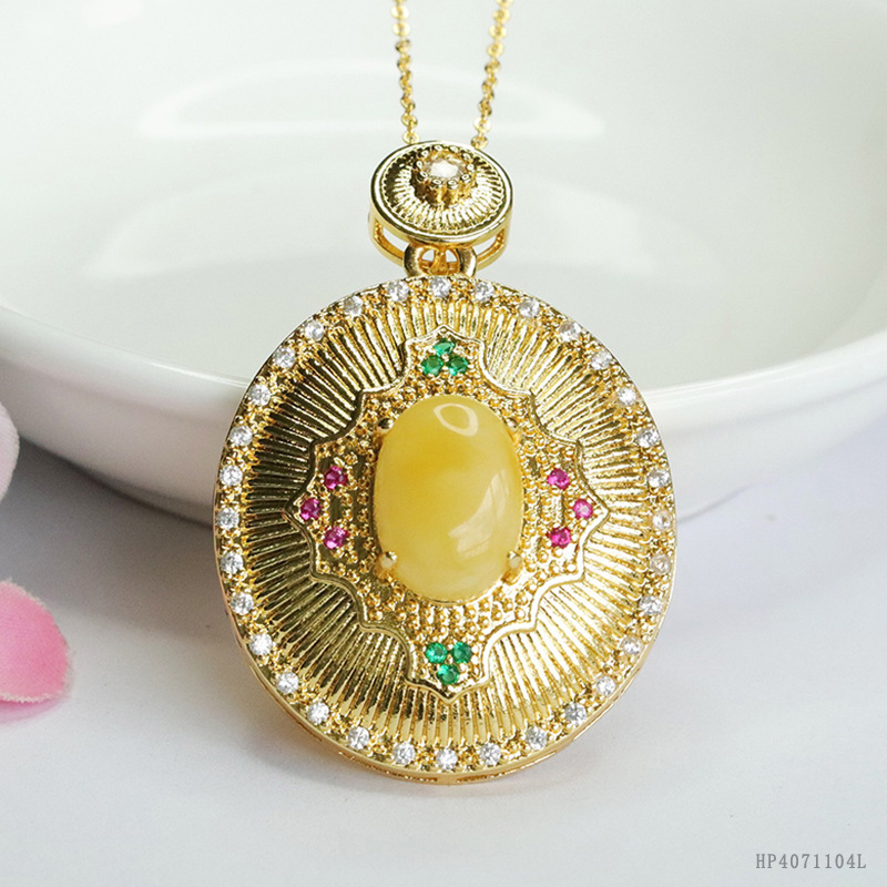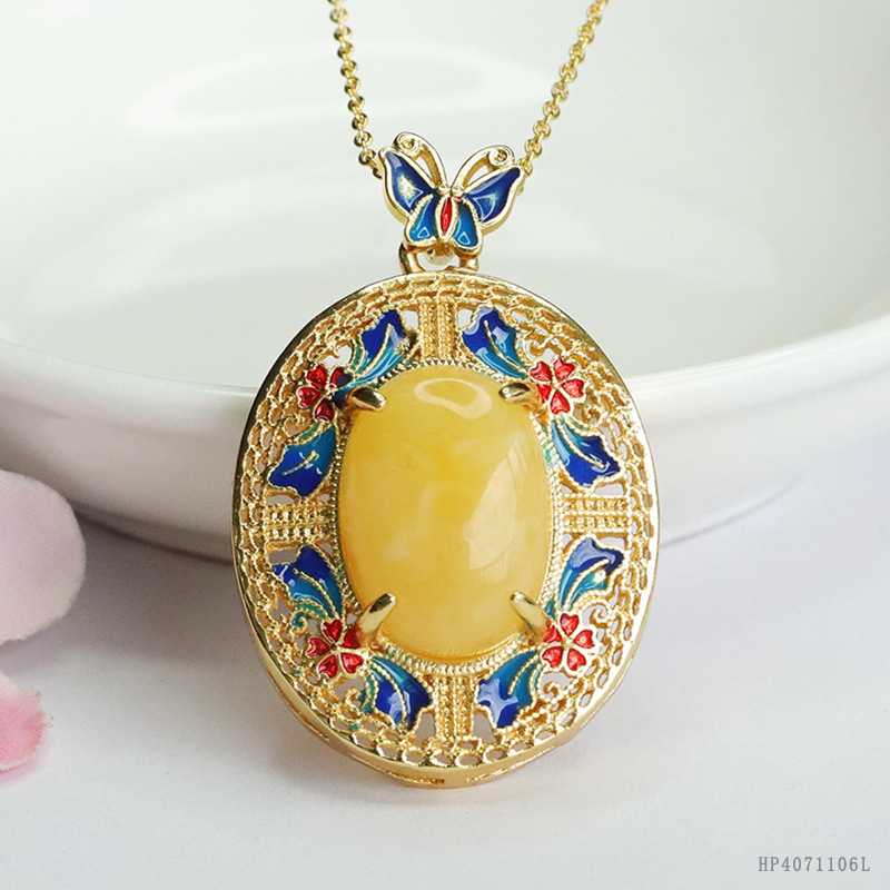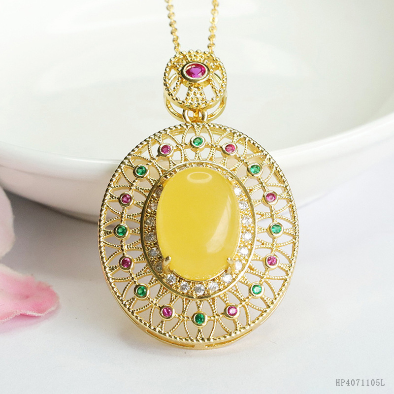 钰天然琥珀ペンダント黄蜜ろうペンダントネックレス宮廷風宝飾品卸売り代発HP4071104L